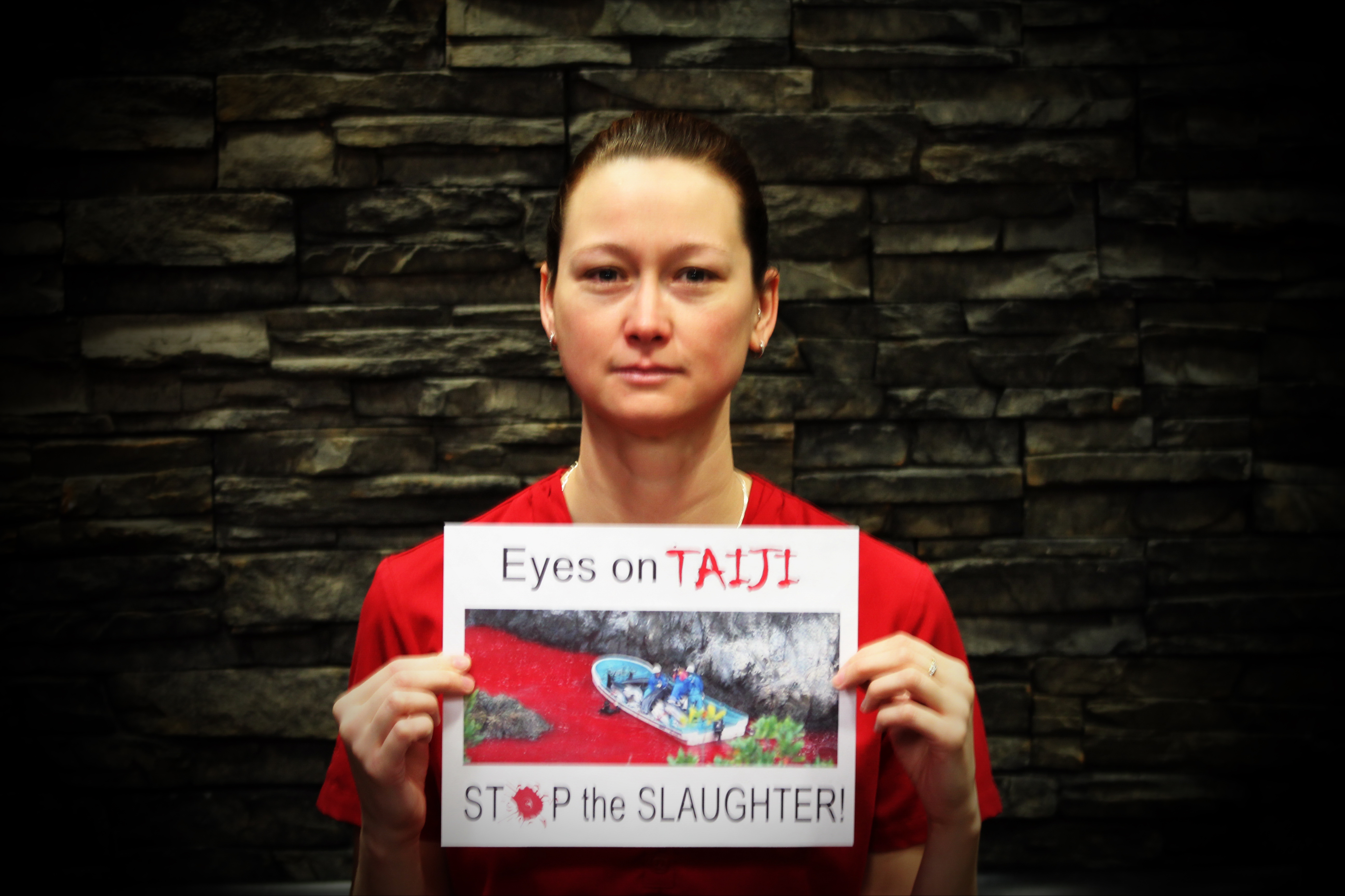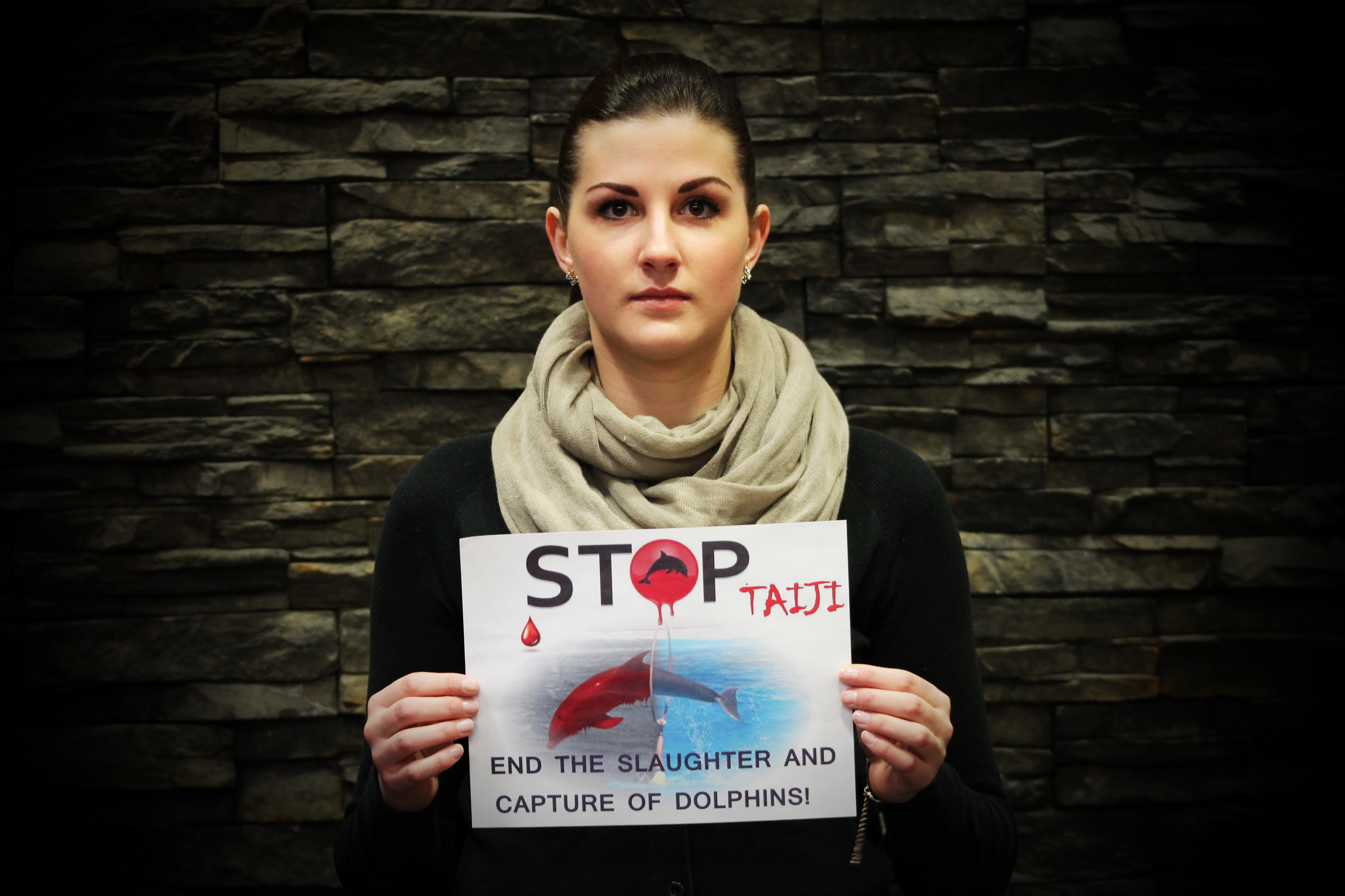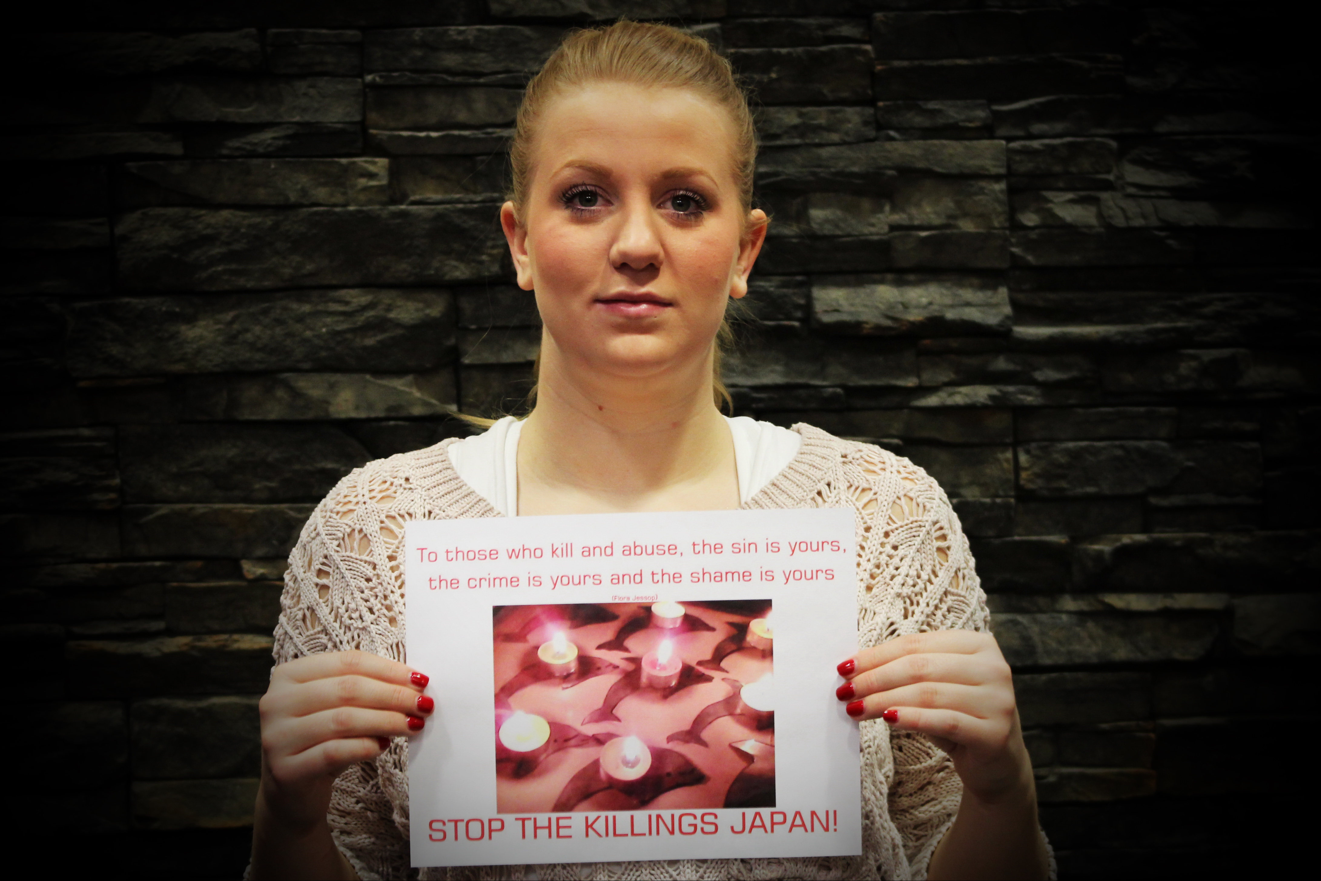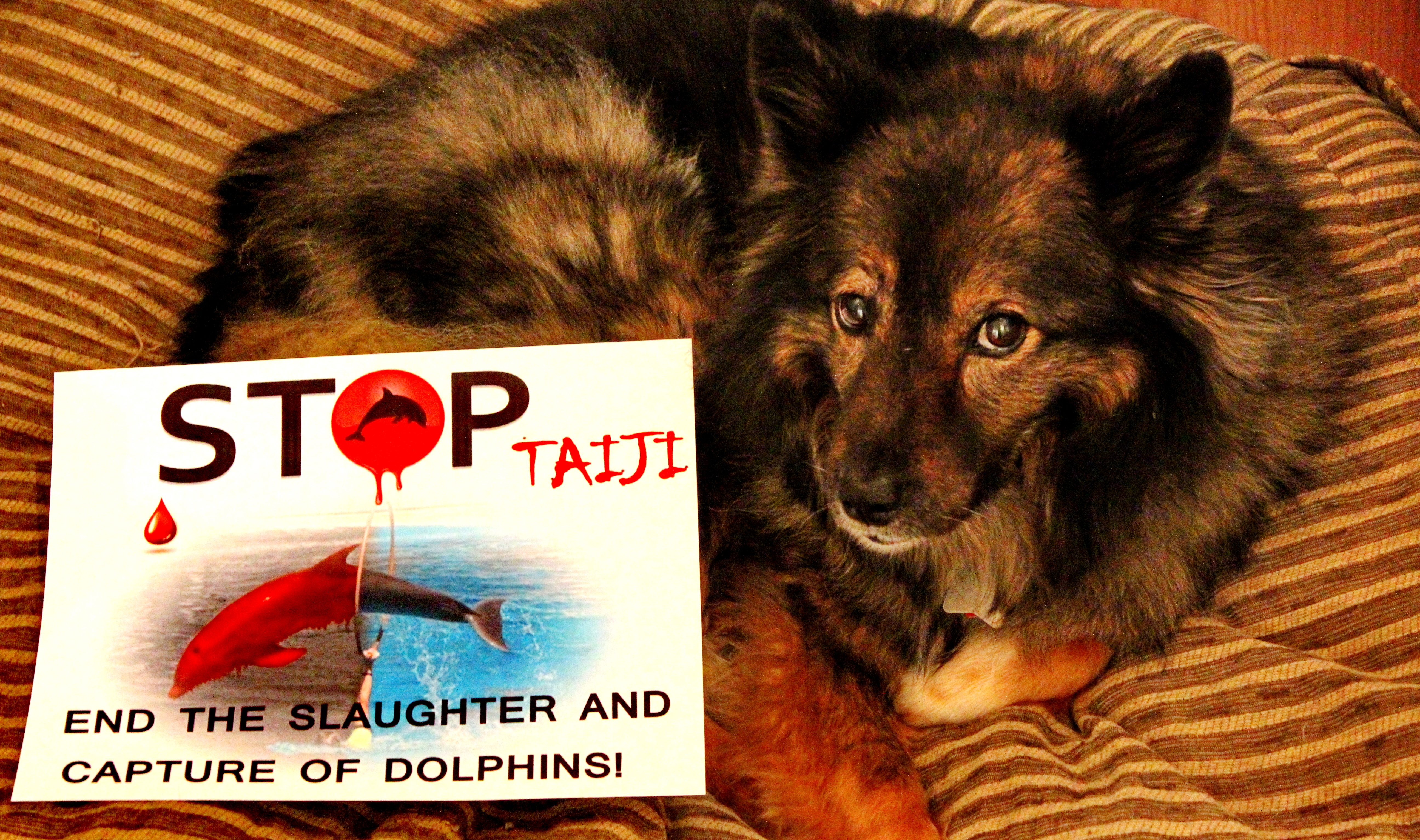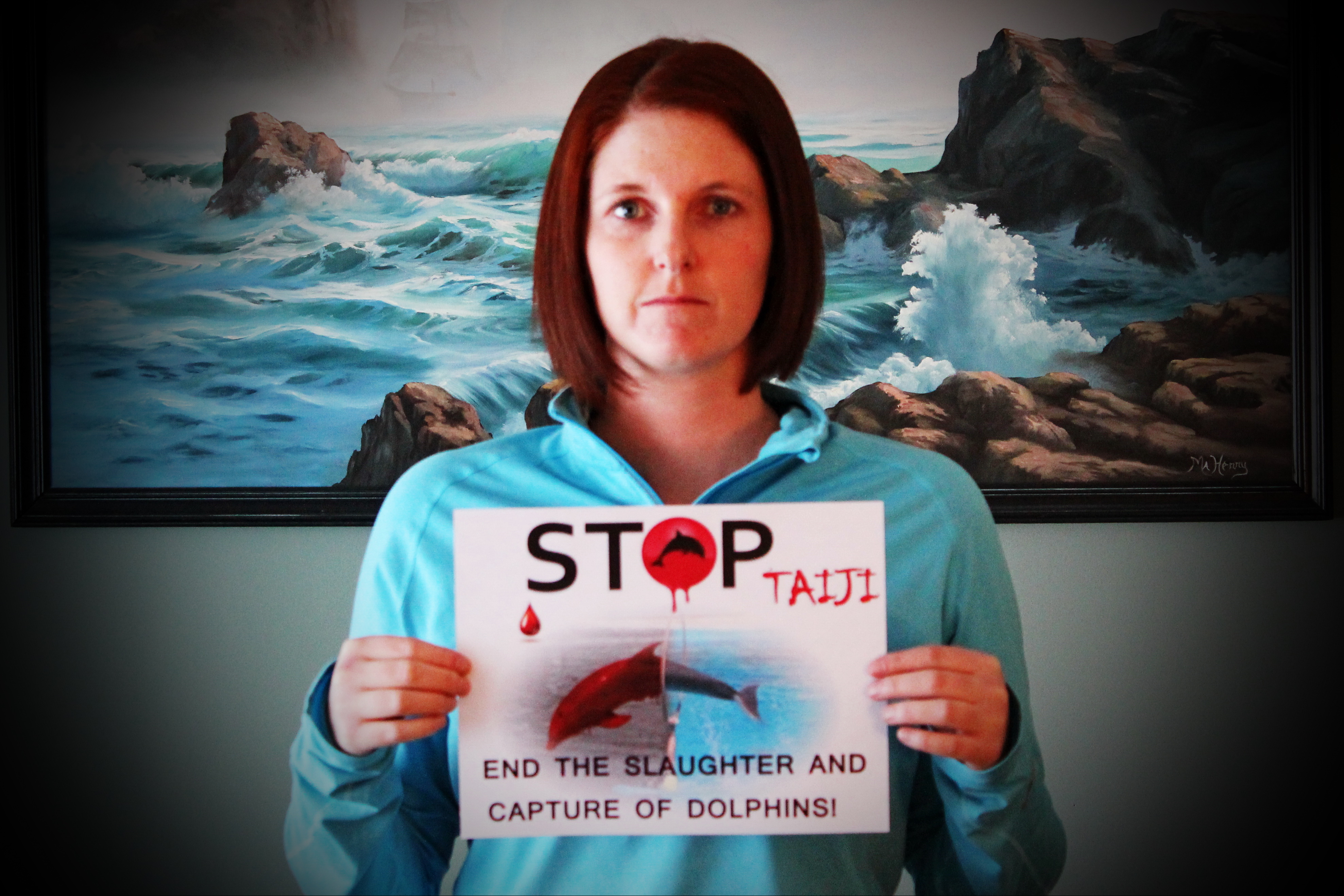 The Taiji Action Day for Dolphins 2013 Online Protest on Facebook provided all the information needed to participate in the protest. And simple enough it was, download the four posters provided (or create your own) take a photo of yourself holding the poster and email it to taijiactionday2013@gmail.com prior to February 28. They will forward the messages to Japan and the Fisherman’s Union and the Olympic Committee so that they hear our voices LOUD and CLEAR!