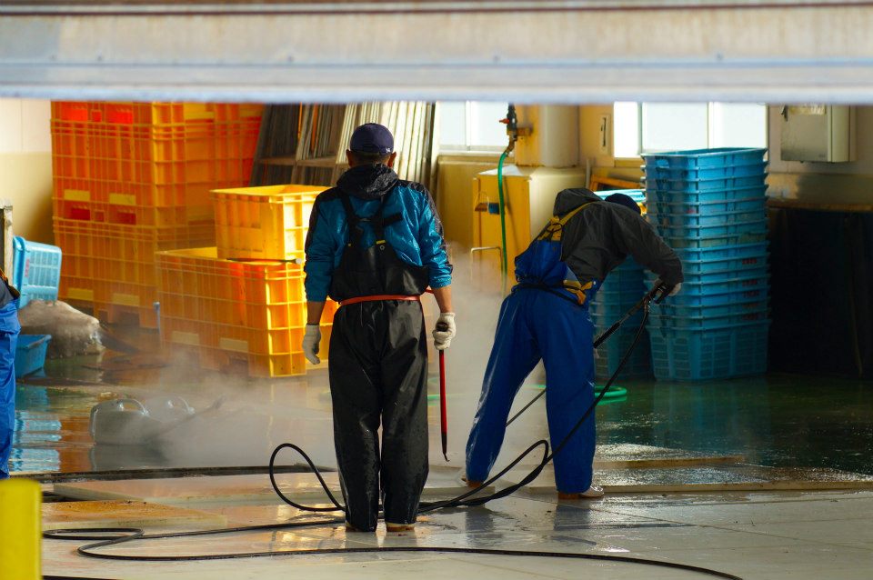 Then then the clean up inside begins … washing away blood, that was still present on the kill floor.