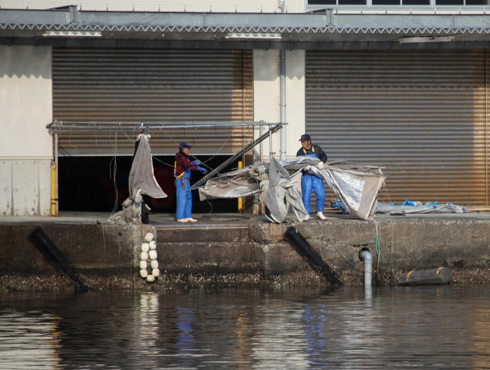 While the dolphin drive season has ended, the killing unfortunately does continue year round. Some boats, such as the one seen below are dry docked and maintenanced. The dolphin killers remove the banger poles but leave them inside the boat to use during the off season. The killing boats are permitted to hunt pilot whales until May and also assist local fisherman with harpooning dolphins during the offseason.
