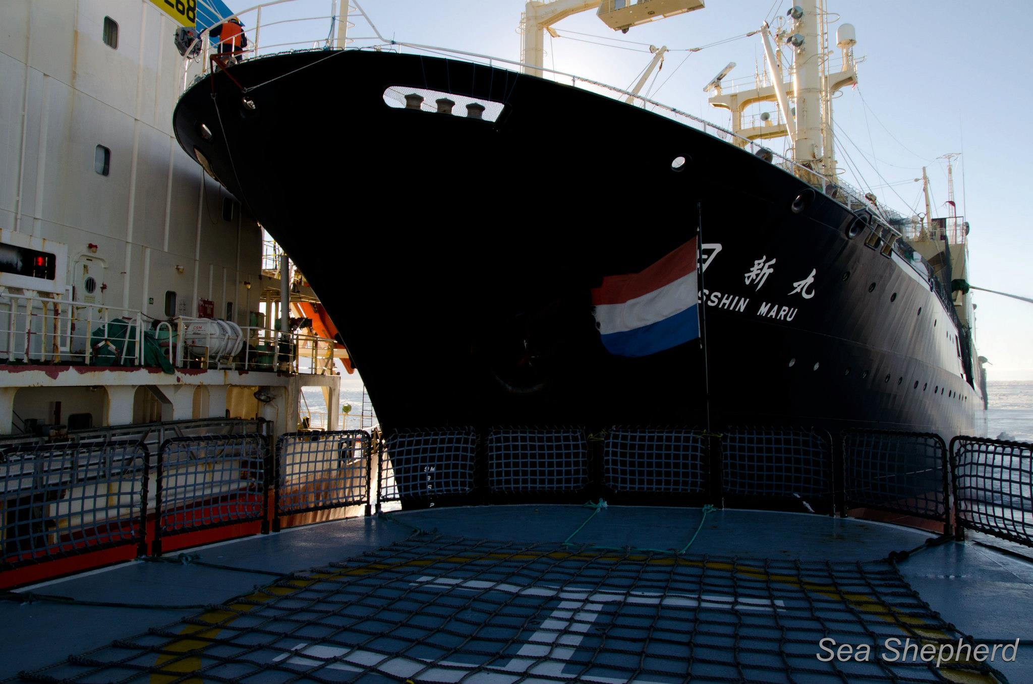 The Nisshin Maru repeatedly ramming all Sea Shepherd vessels is an immediate cause for concern especially for the many courageous volunteers aboard all Sea Shepherd vessels currently putting their live on the line to save whales! Thankfully everyone is currently safe and no injuries have been reported.