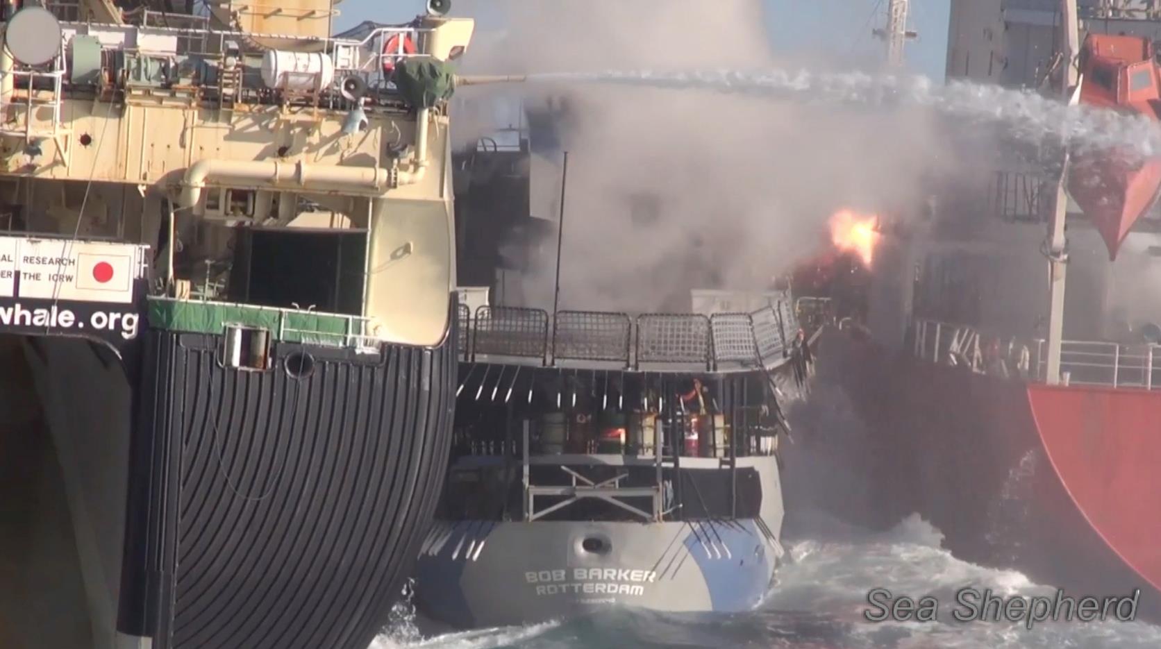 The following photos courtesy of Sea Shepherd Conservation Society on Facebook, show just how close the Nisshin Maru comes to and then collides with the Bob Barker.